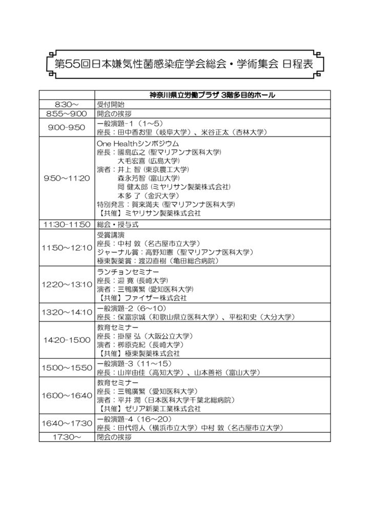 第55回日本嫌気性菌感染症学会総会・学術集会開催